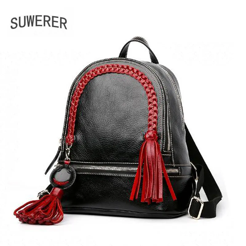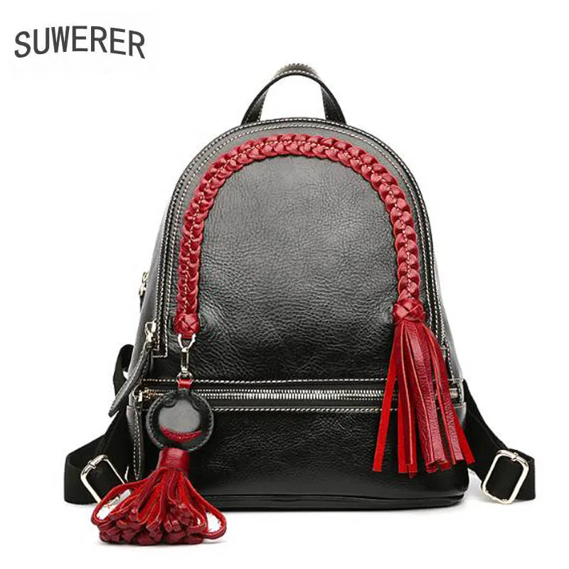SUWERER New Genuine Leather backpack women luxury backpack women bags Top cowhide designer bags wom