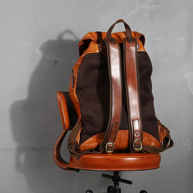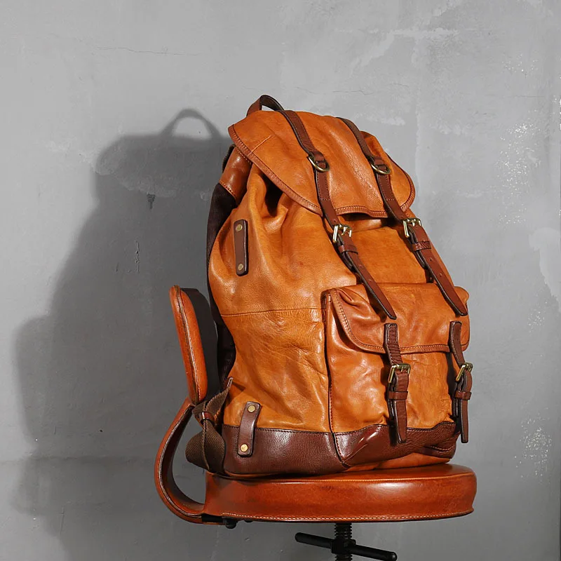 2020 new original cowhide leather men's backpack male retro genuine leather Large capacity bucket b