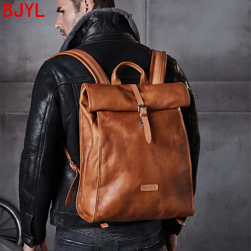 Retro art traveler cowhide leather men's backpack large capacity laptop backpack men leather outdoo