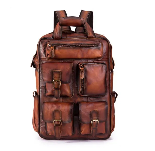 Genuine leather men casual large backpack cow skin sold outdoor backpack