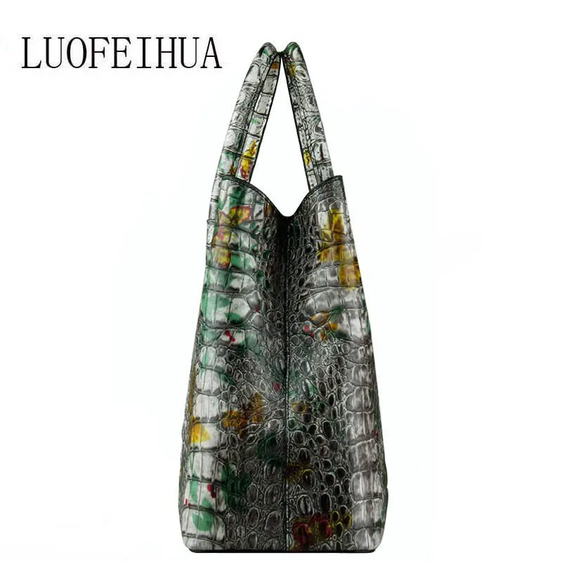 TOP LUOFEIHUA 2019 new high-end crocodile leather handbag Textured leather handbags tide large capacity
