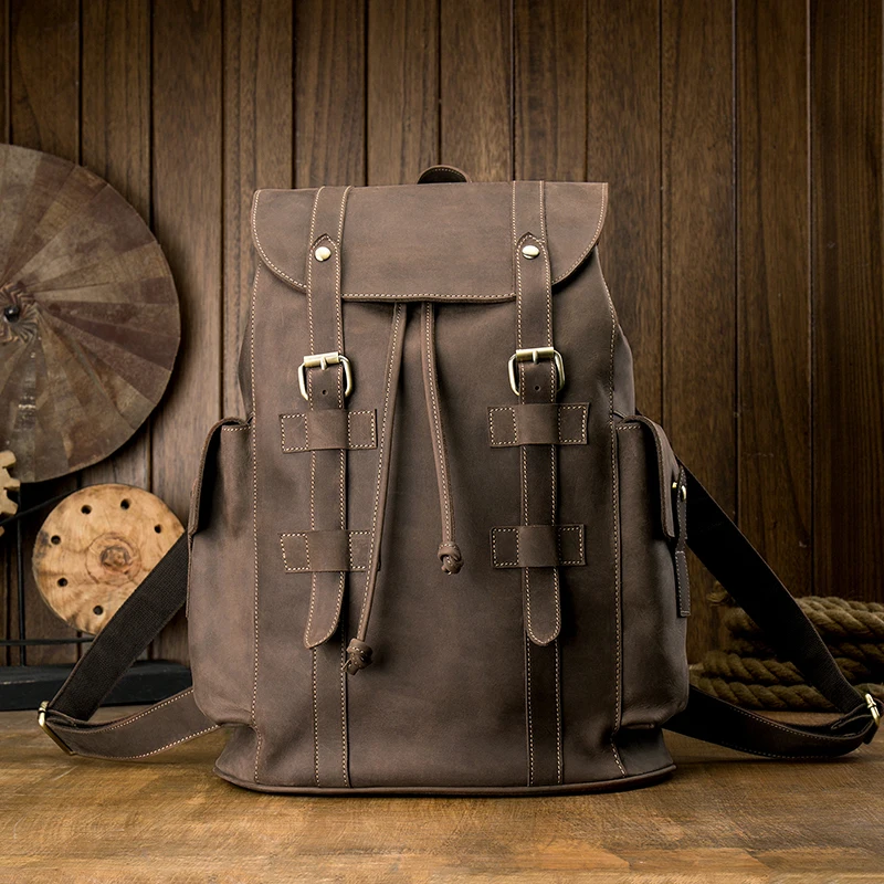 Best Original handmade Retro crazy horse leather men's backpack first layer leather shoulder bag men com